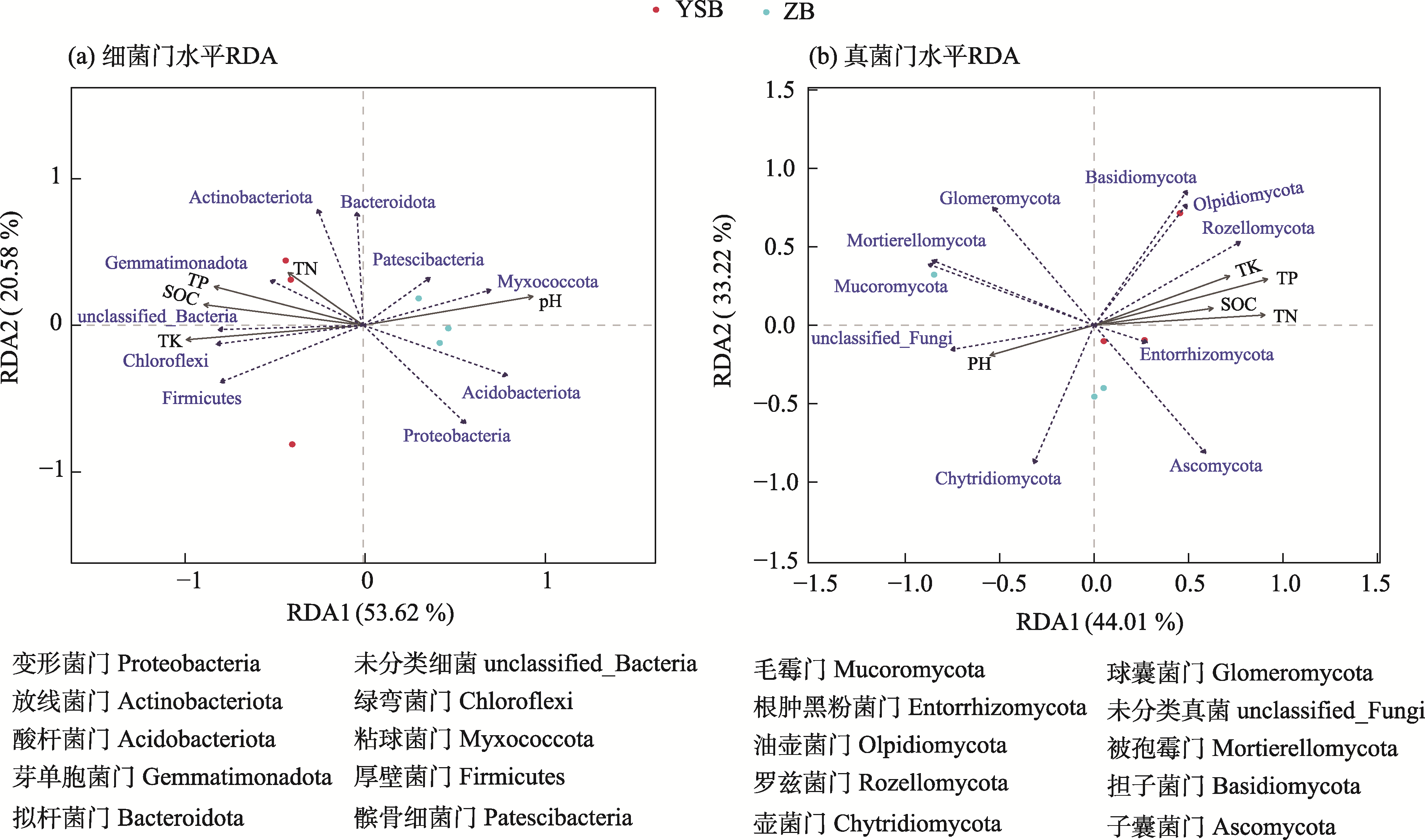 摘要: 为解析野生与栽培两种不同生境黑果枸杞(Lycium ruthenicum)植株根际土壤理化性质及微生物多样性的差异,提供优化栽培策略理论依据。以青海省诺木洪地区野生和栽培黑果枸杞的根际土壤为研究对象,结合高通量测序技术与土壤理化性质分析,比较两者全氮(Total Nitrogen,TN)、全磷(Total Phosphorus,TP)、全钾(Total Potassium,TK)等全量养分和有机碳(Soil Organic Carbon,SOC)含量,了解微生物群落组成特征和功能,并通过冗余分析揭示微生物-土壤因子的关联。结果显示:(1) 野生黑果枸杞植株根际土壤中TK(P<0.001)和SOC(P<0.05)含量显著高于栽培植株,但pH值较栽培植株显著降低0.74(P<0.05)。(2) 微生物群落组成分析表明,野生黑果枸杞植株根际土壤中放线菌门(Actinobacteriota)、绿弯菌门(Chloroflexi)及子囊菌门(Ascomycota)相对丰度高于栽培植株,而栽培植株中变形菌门(Proteobacteria)、酸杆菌门(Acidobacteriota)、被孢霉门(Mortierellomycota)与壶菌门(Chytridiomycota)相对丰度高于野生植株。(3) 冗余分析显示,野生黑果枸杞植株根际土壤微生物群落的α多样性与TN、TP、TK、SOC呈正相关,与pH值呈负相关,栽培植株呈相反趋势。(4) 功能预测表明,野生黑果枸杞植株根际土壤中腐生营养型真菌功能丰度较高,而栽培植株中植物病原体功能丰度较高。研究结果可为黑果枸杞规模化种植及退化生境生态修复提供科学依据。