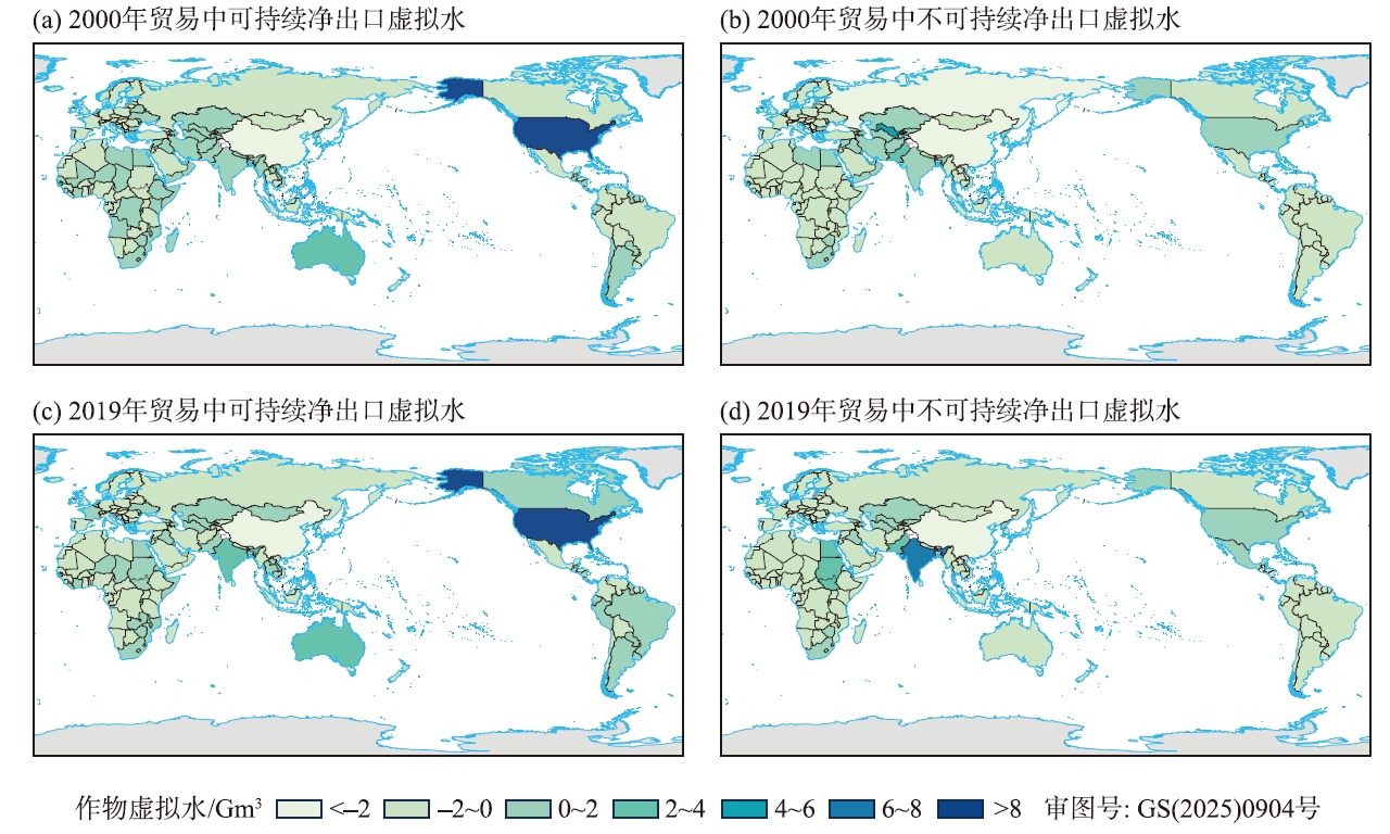 将农作物灌溉用水纳入全球贸易链并分析其可持续性,对于确保水资源和粮食安全至关重要。受制于经济利益与水资源开发利用之间的矛盾,农作物贸易中虚拟水可持续性的问题尚未得到足够重视。本研究基于粮农组织提供的农作物生产与贸易链矩阵数据,采用实物贸易流分析、空间相关分析及多尺度地理加权回归等方法,系统解析了2000—2019年全球农作物虚拟水贸易的可持续性时空分布、空间关联特征以及净出口水量的驱动因素。 结果显示,近20 a来全球农作物的可持续和不可持续净出口虚拟水量(尤其是棉花)均呈现出逐年波动上升趋势(约0.20 Gm3·a-1),但随着农业技术水平提升,不可持续虚拟水量在虚拟水贸易总量中的占比有所下降,从42.31%下降至41.40%。空间分析结果表明,通过全局和局部莫兰指数分析,2000—2009年全球农作物不可持续净出口虚拟水量表现出显著的空间聚集特征,但近10 a该聚集趋势逐步减弱并趋于分散。净出口虚拟水量的增长主要受耕地面积变化的驱动,而农业增加值对贸易中的虚拟水量具有显著的负向影响。本研究结果强调了持续推行严格粮食安全政策的重要性,以促进全球农作物虚拟水贸易的可持续发展,并进一步减少不可持续用水比例。